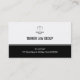 Um cartão de visita moderno com elementos de preto, cinza e branco e uma balança simbolizando a justiça