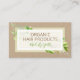 Esses cartões de visitas são para produtos feitos à mão como máscara de cabelo e soros, xampu e condicionador. A design apresenta uma estrutura moderna em camadas com folhas e folhagem abaixo, sobre um fundo Kraft.