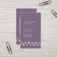 Tarjeta de visita vertical personalizable elegante y moderna en color morado para consultores y profesionales independientes o autónomos. Diseño minimalista, moderno con motivos geométricos. Círculos de varios colores (morado, amarillo, turquesa, naranja, violeta). Dispone de los logotipos de las principales redes sociales (Facebook, Instagram, Pinterest, Linkedin, Youtube, X, TikTok) para incluir el nombre de usuario. Con la herramienta de diseño los logos se pueden ordenar, modificar o incluso eliminar. Adapta y modifica la tarjeta a tu gusto.