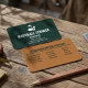 Stand out in the building trades with this premium business card template. Featuring a modern forest green and copper color palette, this design is perfect for handymen, general contractors, and home repair professionals. The front showcases a clean repair icon, while the back features a complete Handyman Service Checklist (Remodeling, Plumbing, Electrical, and more). This customizable business card allows you to easily edit text, colors, and logos to create the perfect contractor marketing tool. High-contrast and professional for a lasting first impression.