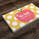 Girly Apple & Dots Yellow Teacher Cartão de visita.