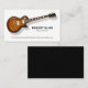 Cartões de visitas de professores de música profissional com guitarra na moda, seu nome, cargo e informações de contato.