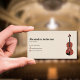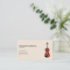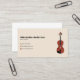 Cartão de visita minimalista para professor de violino ou artista violinista, com ilustração de um violino acústico marrom sobre fundo bege. Ele vem com informações de contato ilustradas por ícones.