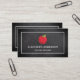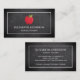 Cartão de visita elegante com uma maçã vermelha e bonita com tipografia moderna em fundo preto. Personalize-o com o seu nome e os seus contatos para dar uma primeira impressão duradoura.