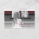 Uma cartão de visita elegante professora de piano com uma fotografia de uma garotinha com um arco rosa no cabelo comprido, sentada ao piano com um bonito vestido rosa. Personalize adicionando o nome do instrutor de música.