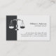 O modelo de cartão de negócios profissional em dois tons para o advogado na lei, o advogado, a empresa de advocacia, o notário, o negócio legal e a justiça relacionou campos com logotipo estilizado da escala no cinza de carvão vegetal claro e escuro (outras cores igualmente disponíveis).