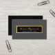 A simplicidade de um cartão de contato elegante e chic de cinza escura com detalhes falsos em ouro e com campos para nome (ou nome comercial), profissão e informações adicionais (endereço, número de telefone e e-mail)...