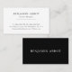 Cartão de visita profissional para ele, em preto clássico e branco com um layout simples. Seu nome está no topo em uma fonte serif grande junto com seu título. Abaixo está uma linha fina que separa suas informações de contato com seu número de telefone e número de fax em negrito. A parte de trás é preta com seu nome em branco. Um design básico e simples é excelente para o minimalista, mas ainda se vê tão elegante. Este cartão de visita é perfeito para um homem de negócios moderno.