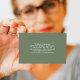 Faça uma impressão duradoura com esse cartão de visita profissional elegante e minimalista. Com um design limpo e moderno com texto personalizável na frente e atrás, esta placa é perfeita para mostrar seu nome, título e detalhes de contato com elegância e simplicidade. Ideal para empresários, consultores, freelancers e profissionais de qualquer setor que valorizem uma apresentação refinada e polida. Escolha o tamanho, o estilo do canto e o tipo de papel no menu de opções.