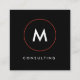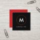Para um profissional e um olhar lustrado, um cartão de visita quadrado simples, minimalista, moderno com um monograma branco na parte dianteira preta. Cor vermelha contínua na parte traseira com texto branco para a informações de contacto personalizada. Uma grande escolha para consultores empresariais e profissionais, fotógrafo, desenhadores de moda, decoradores interiores e estilista.