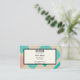 Retângulos em cores retrorreflectoras de turquesa e cor-de-rosa-casca num fundo bronzeado criam um bom design num cartão de visita de um tutor. Pode ser usado para muitas outras profissões, inclusive design de interiores ou design gráfica.
