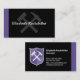 Este cartão de visita preto corajoso e à moda caracteriza o logotipo cruzado do martelo da rocha do geólogo clássico em um protetor decorativo. Um lado tem o protetor, sua informação, e uma listra decorativa da cor, quando o outro lado caracterizar seu nome proeminente sobre um martelo cruzado da rocha!