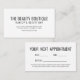 Esta placa de compromisso simples, mas na moda, apresenta um design branco e preto limpo com todo o texto nas fontes sans serif modernas. O layout é minimalista, oferecendo uma aparência profissional fácil de ler e atraente visualmente. Todas as informações de contato — número de telefone, email, endereço ou manipuladores de mídia social — são claramente exibidas na frente. A parte traseira oferece espaço para escrever na data, hora e detalhes de compromisso, oferecendo praticidade para programação diária. Totalmente personalizável, você pode atualizar o texto para ajustado de sua marca. Uma escolha elegante e profissional para salões, profissionais de beleza e criativos que buscam um cartão de compromisso mínimo, mas impactante.