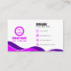 Apresente-se com estilo e profissionalismo usando este Cartão de visita de Elegante Moderno Roxo Simples. Projetada com uma paleta de cor roxa elegante e layout minimalista, esta placa expele sofisticação e dá uma impressão duradoura. Perfeito para empresários, profissionais criativos ou qualquer pessoa que queira elevar seu jogo de rede. Personalize a design para mostrar seu nome, título, informações de contato e logotipo sem problemas. Torne a sua marca inesquecível com este chic e cartão de visita contemporâneo.