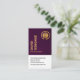 No verso, num cobrir roxo escuro, o logótipo ouro está no topo, seguido do seu nome, dos seus dados de contato e de uma legenda de slogan.