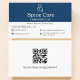 Promote your chiropractic practice with this modern business card featuring a clean, scannable QR code for instant access to appointments, website links, or contact information. The professional layout highlights your name, specialty, and clinic details—perfect for chiropractors, spine care specialists, and wellness offices seeking a sleek, digital-friendly, fully print-ready design.