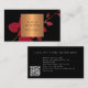 Cartão de visita elegante e glamouroso profissional feminino simples e moderno com SEU CÓDIGO QR para as mídias sociais, para seu site ou galeria de fotos com uma ramificação floral de aquarela com floradas vermelhas profundas e com uma etiqueta geométrica metálica de cobre azul rosa de ouro. +++++++++++ Adequado para salão de beleza ou para um estilista de moda, decorador de interiores, designer, home staging, arquiteto, artista, florista, planejador de eventos, pintor, outros profissionais criativos, donos de moda, dama chefe, distribuidor de produtos de beleza de batom.