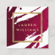Os pincéis vermelhos profundos e rubis criam um pano de fundo abstrato neste modelo de cartão de negócios quadrado designer. Seu nome ou nome comercial é exibido em uma caixa de ouro falso na frente para uma estética moderna. Esta placa de lado duplo permite um amplo espaço na parte traseira para suas informações de contato. Um cartão divertido e atraente para profissionais criativos. Arte e design © 1201AM Design Studio | www.1201am.com