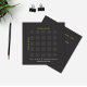 Este cartão de visita quadrado apresenta uma grade geométrica elegante definida contra um fundo preto em negrito. A grade geométrica simboliza o planejamento meticuloso e a precisão que definem a obra de arquitetos e engenheiros.