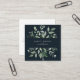 Cartão De Visita Quadrado Azul Escuro Foliage de Aquarela Elegante