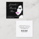 Design apresenta um retrato de moça-chic em preto e branco com lábios cor-de-rosa e olhos azuis, em um estilo de arte vetorial. Os detalhes de seu contato, incluindo endereço, telefone, email, site e identificador de mídia social, estão no verso. Clique no botão 'Pesonalizar' para adicionar seus detalhes. Você pode personalizar ainda mais clicando no link 'Clique para personalizar mais' na parte inferior da caixa Personalizar e use a ferramenta design para remover ícones para as mídias sociais que você não usa e reposicionar os itens, se necessário.