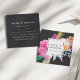 Cartões de visitas florais elegantes, em forma quadrada única, sobre papel preto rico, apresentam um buquê tropical de flores cor-de-água pintadas, cor-de-rosa brilhante e coral. Personalize o lado frontal com seu nome e nome ou título da empresa e adicione as informações de contato do cheio ao lado inverso. Perfeito para planejadores de casamento, planejadores de eventos, profissionais de ocasião especial ou qualquer ocupação.