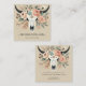 Cartão De Visita Quadrado Boho Floral Cow Skull
