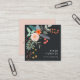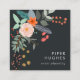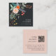 Cartões de visitas florais iluminados em formato quadrado único apresentam um buquê estilo boho em tons de coral e verde, acentuados com pena e verde. Adicione seu nome e nome comercial ou título/ocupação no canto inferior direito, contra um fundo preto rico. Cartões com letra inversa a escura em um fundo cor-de-rosa pincelado contrastante com um código QR personalizável.