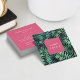 Cartões de visitas elegantes com uma vibração tropical chic da ilha apresentam um fundo de folhas botânicas da selva verde vibrantes. Personalize a frente com seu nome ou nome comercial e adicione suas informações de contato de cheio à parte traseira em letras brancas modernas em um fundo rosa brilhante.