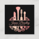 Belo cartão de visita da indústria de beleza do estilo de luxo. Excelente para maquiadores, cabeleireiros, profissionais da indústria cosmética, empresários da indústria de beleza, cosmetólogos e muito mais. Apresentando ferramentas de beleza de gradiente rosa dourado, rodando a arte. Por favor, note que o brilho holográfico no trabalho de arte é simulado.