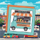Cartão De Visita Quadrado Caminhão de Comida comida