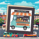 Cartão De Visita Quadrado Caminhão de Comida comida