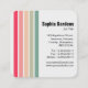 Um modelo de cartão de negócios com um motivo de faixa horizontal de cinco cores na frente com as mesmas faixas em execução vertical na parte traseira e alinhadas à esquerda. Nome na frente em letras de espaço duplo. O nome também é repetido no verso com o título/cargo e os detalhes de contato abaixo. Este modelo de cartão foi concebido principalmente para um indivíduo ou um freelancer que pode, evidentemente, ser mais personalizado e pode ser facilmente adaptado para outras utilizações.