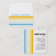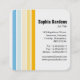 Um modelo de cartão de negócios com um motivo de faixa horizontal de cinco cores na frente com as mesmas faixas em execução vertical na parte traseira e alinhadas à esquerda. Nome na frente em letras de espaço duplo. O nome também é repetido no verso com o título/cargo e os detalhes de contato abaixo. Este modelo de cartão foi concebido principalmente para um indivíduo ou um freelancer que pode, evidentemente, ser mais personalizado e pode ser facilmente adaptado para outras utilizações.