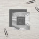 Tendência, cartão de visita quadrado moderno com um design de geode agado em tons de cinza e branco, com falsos realces de brilho prateado. Personalize-o com o seu nome na letra branca da placa de impressão e o seu título em itálico branco da serif em um quadrado de dupla borda de cinza. Adicione seu nome, título e detalhes de contato em branco no lado oposto da cinza sólida.