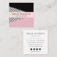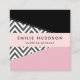 Cartões de visitas elegantes, na moda e sofisticados com padrão zigzag (chevron) em cinzas e cor branca com manchas cor rosa e pretas. Design moderno e moderno, perfeito para amantes de ziguezague.