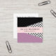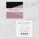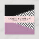 Cartões de visitas elegantes, na moda e sofisticados com padrão zigzag (chevron) em cinzas e cor branca com manchas roxas e pretas de cor. Design moderno e moderno, perfeito para amantes de ziguezague.