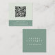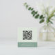 Cartão de visita moderno e mínimo com um belo bloco colorido em verde-menta. Código QR fácil de usar para acessar os detalhes de contato no seu site.