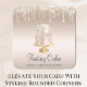 Cartão de visita de chic para designers de bolo de casamento e especialistas, padarias, cozinheiros de pastelaria e catadores de eventos. A frente apresenta o brilho do ouro champanhe, pingando um fundo de ouro ombre, uma ilustração de um belo bolo de casamento de ornamentado com a coordenação do gelo brilhante, e o nome de sua empresa em um roteiro de cinza mole na moda. Ao contrário, insira seu endereço de site para criar um código QR para que seus clientes digitalizem e adicione seu nome, título e outras informações de contato.