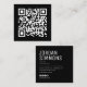 Mantenha-o simples e ousado com este na moda, cartão de visita de tendências mostrando seu código QR em grande escala na frente e suas informações de contato em tipografia limpa e minimalista em preto e branco com ícones nas mídias sociais na parte de trás.