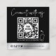 Cartão de visita de código QR moderno com texto falso de script prateado e fundo preto. Esta placa de código QR de mídia social com efeito de folha prateada é perfeita para adicionar suas informações de mídia social, inserir seu código QR e o logotipo e os detalhes de contato para encorajar os clientes a se conectar com você e segui-lo on-line - use-o para instagrama, facebook, tiktok, youtube ou qualquer outro código QR. O moderno design de 'digitalização com um telefone' faz com que este scannable nos siga com a placa de verdade e chic.