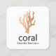 Cartão De Visita Quadrado Coral Dourado Moderno Tropical