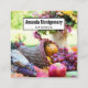 Cartões de visitas com uma fotografia de uma mesa cheia de naturezas. Preparado com cornucopia, legumes e frutas coloridos.
