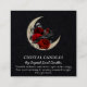 Cartões de visitas com corvo na lua com flores vermelhas e pretas. Estes cartões são para uma vela de cristal e um negócio de vela soletrada.