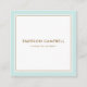 Cartões de visitas quadrados, brancos, profissionais ou cartões de visitas pessoais com bordas azuis aqua claras. Nome personalizável e título/nome da empresa na frente. No verso estão campos de modelo personalizáveis para nome, título/nome/especialidade da empresa e informações de contato. Um design mínimo e elegante