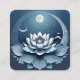Uma imagem de uma flor de lótus cercada por uma lua celeste. O cartão é feito com uma cor azul e calmante.