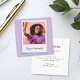 Cartão de visita simples, moderno e divertido com sua foto em uma cobertura de quadro branco e um design de tipografia manuscrita de tendências. Na parte de trás está um layout minimalista para todas as informações de contato, incluindo as mídias sociais. Esta é a versão púrpura clara.