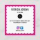 Este cartão de visita apresenta um quadro quadrado chic escalloped em cor-de-rosa fuchsia vibrante com uma borda branca nítida, criando um design em negrito e na moda. A frente mostra uma citação de tipografia que diz "Obrigado pela sua ordem", acrescentando um toque pessoal e sincero. Abaixo da citação, uma linha de texto personalizado fornece espaço para seu nome de negócios ou slogan, fazer-o exclusivamente seu. O lado inverso continua o tema elegante com um quadro branco dimensionado e uma borda fuchsia, oferecendo espaço para seu nome e uma mensagem personalizada de obrigado ou código de desconto para encorajar negócios repetidos. Uma área dedicada para o logotipo de sua empresa garante seus brilhos de marca, enquanto dois ícones de mídia social para Facebook e Instagram permitem que você compartilhe suas contas sociais e se conecte com os clientes on-line. Esta design é perfeita para pequenas empresas, artesãos e vendedores Etsy que querem expressar gratidão com talento enquanto promovem a sua marca. É uma escolha ideal para aqueles em campos criativos como bens feitos à mão, compras de butique ou serviços personalizados de produtos, fornecendo um toque atencioso e memorável para cada encomenda.