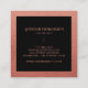 Este cartão de visita quadrado apresenta sofisticação através de um fundo de textura rosa cativante, emparelhado de sotaques pretos elegantes. A frente equilibra elegantemente o pano de fundo rosa texturizado com elementos negros minimalistas, criando um intrigante contraste visual. No verso, a informação essencial destaca-se contra a superfície rosa texturizada, reproduzida numa fonte preta refinada. É uma mistura única de textura e profissionalismo que faz uma declaração memorável.