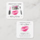 Cartão De Visita Quadrado Glam White & Pink Lipstick Eyeshadow Makeup Artist